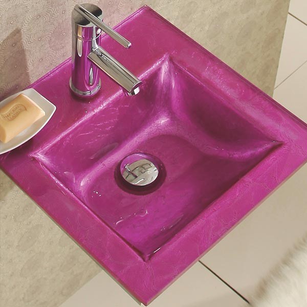 Lavabo suspendido Bubble de cristal rosa y cromo