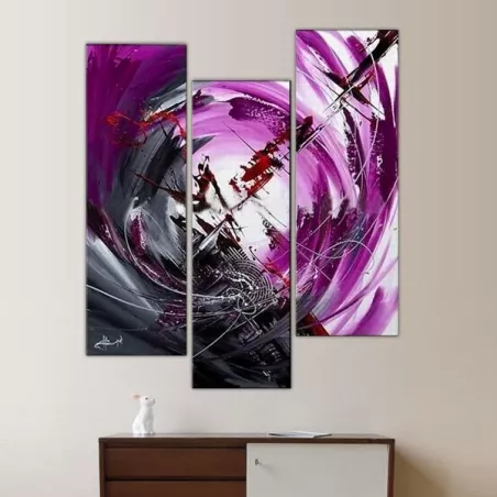 Denne tryptik i mauve og violet har form af et fokuspunkt: Øjet ledes mod midten af lærredet, hvor der er et element uden for spiralen i en abstrakt stil. Dette lærreds cachet forstærkes af tilføjelsen af en signatur.