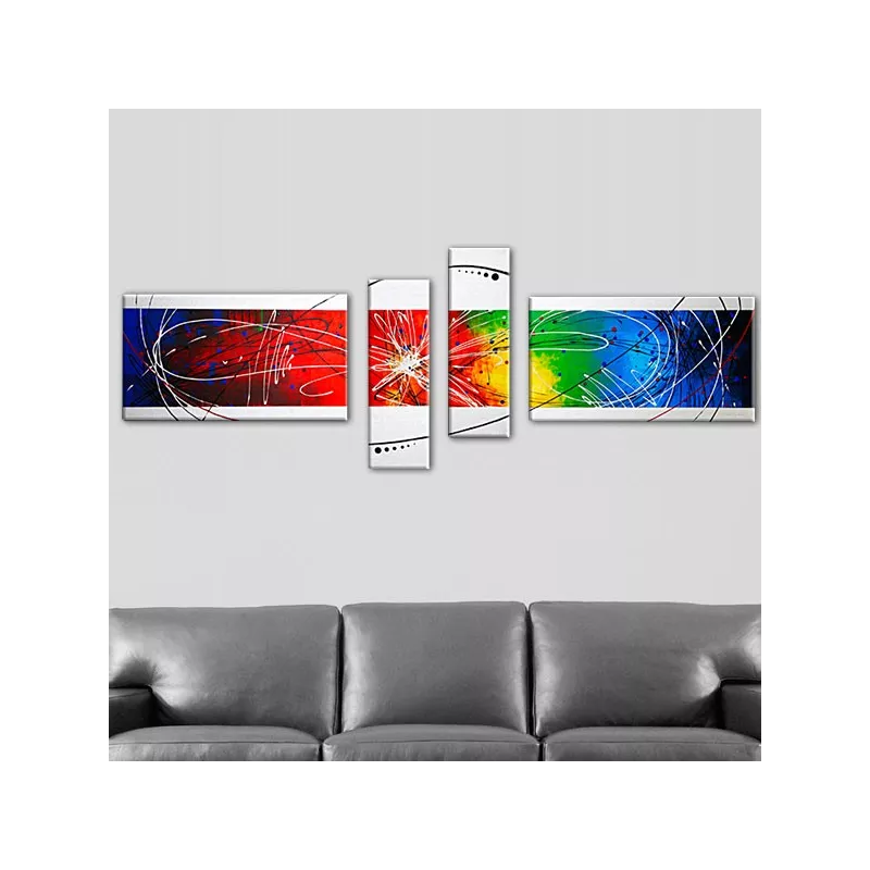 4 värillistä paneelia, joissa on valkoiset reunat
