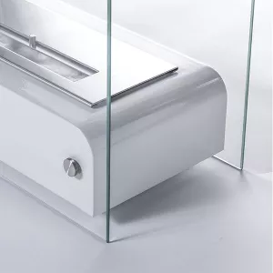 La cheminée éthanol Toast séduit par ses lignes légères et raffinées. Son design épuré et galbé lui confère une allure presque aérienne, sublimée par ses vitres de sécurité latérales qui, en plus d’apporter une touche moderne, servent de dissipateurs de chaleur.