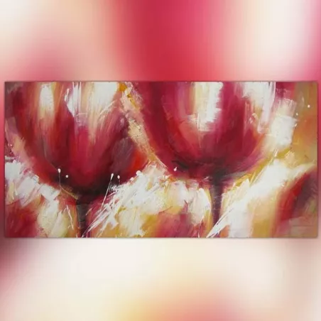 Si tratta di una composizione floreale molto esplicita. Non è necessario alcun testo per capire che questo dipinto utilizza il simbolismo della passione e dell'amore. Vediamo due fiori molto stilizzati nei toni del rosso e dell'arancio. I colori caldi e le pennellate molto ruvide danno l'impressione del movimento che sarebbe stato dato dal vento. Possiamo immaginare la metafora di questi due fiori, come due esseri che si incontrano. Un regalo perfetto per i giovani innamorati.