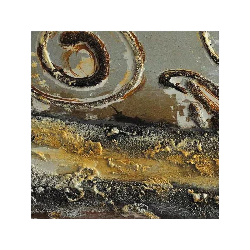 Korting -50%- schilderij in crème, omber, zilver en wit,