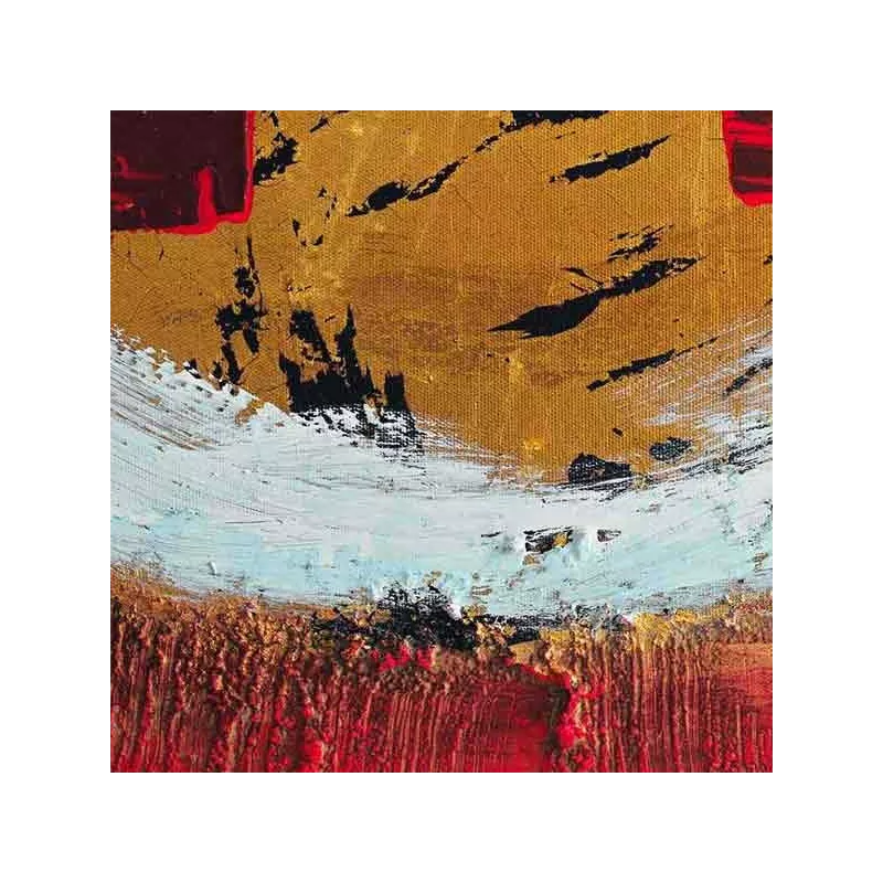 - O material: o fundo deste quadro, em tons de dourado, parece estalado. Faz lembrar o Raku, a cerâmica japonesa. Já estamos na Ásia.