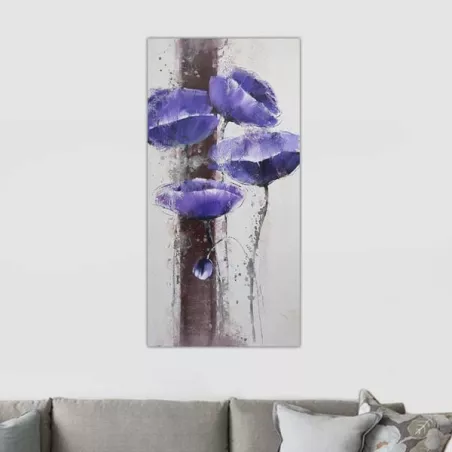 Blomman på den här tavlan är en blå anemon som kännetecknas av sin blomkrona. Dess karakteristiska nyans ger målningen en lugn och rogivande känsla. Den mycket eteriska kompositionen av denna målning bidrar också till att skapa en zenatmosfär: blommorna verkar ha placerats där och vilar som om de svävade.