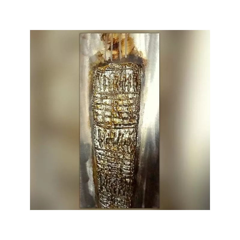 Vid första anblicken påminner motivet i denna målning om en dolmen. På dess kropp finns färginlägg som påminner om runor, ett av de första alfabeten som människan använde. Reliefen på denna duk har åstadkommits med mycket tjock färg, applicerad med kniv: det ger intrycket av ett ganska primitivt verk, vilket kontrasterar väl mot den rika förgyllningen.